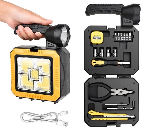 Lámpara con linterna y kit de herramientas solar y usb
